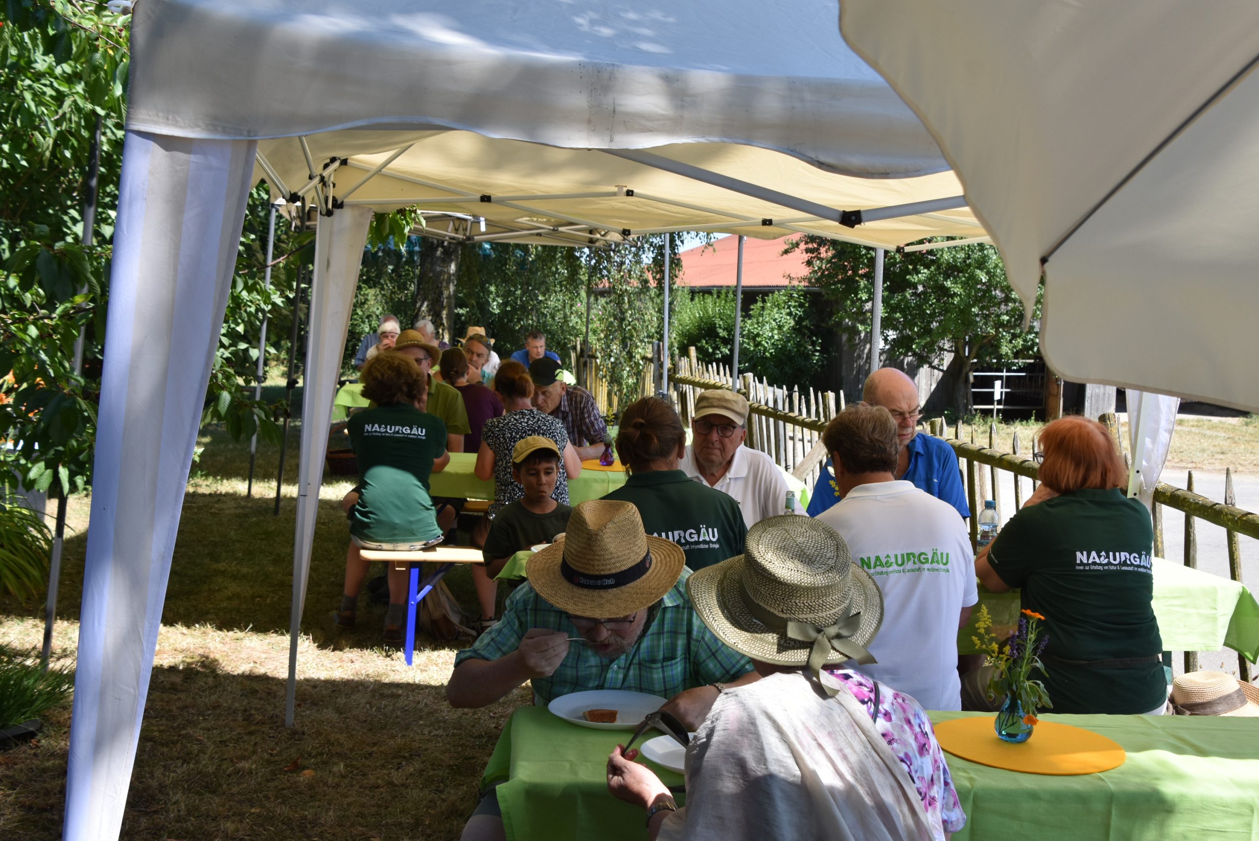 Trotz der hohen Temperaturen ließen sich viele Interessierte nicht abschrecken – und wurden belohnt: mit leckerem Kuchen, kühlen Getränken, frischem Obst, spannenden  und nicht zuletzt mit der Geburt von zwei kleinen Zicklein während der, auch ohnehin schon interessanten, Hofführung!