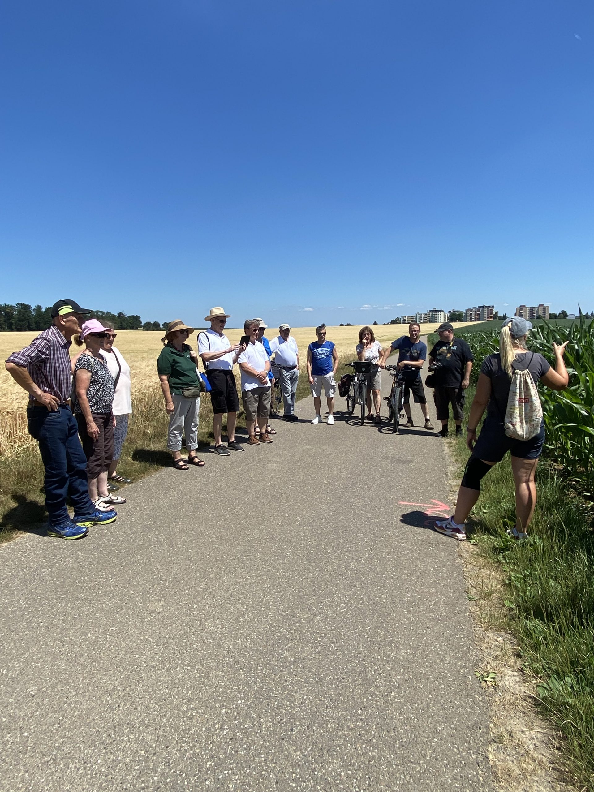 Aline Breuninger führte durch die Felder zum Thema Schilf-Glasflügelzikade – einem kleinen Insekt mit großer Wirkung.